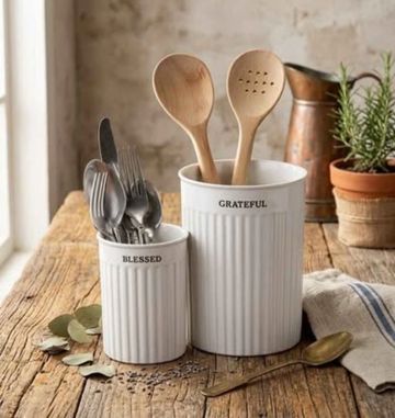 Stoneware Utensil Holder Set.